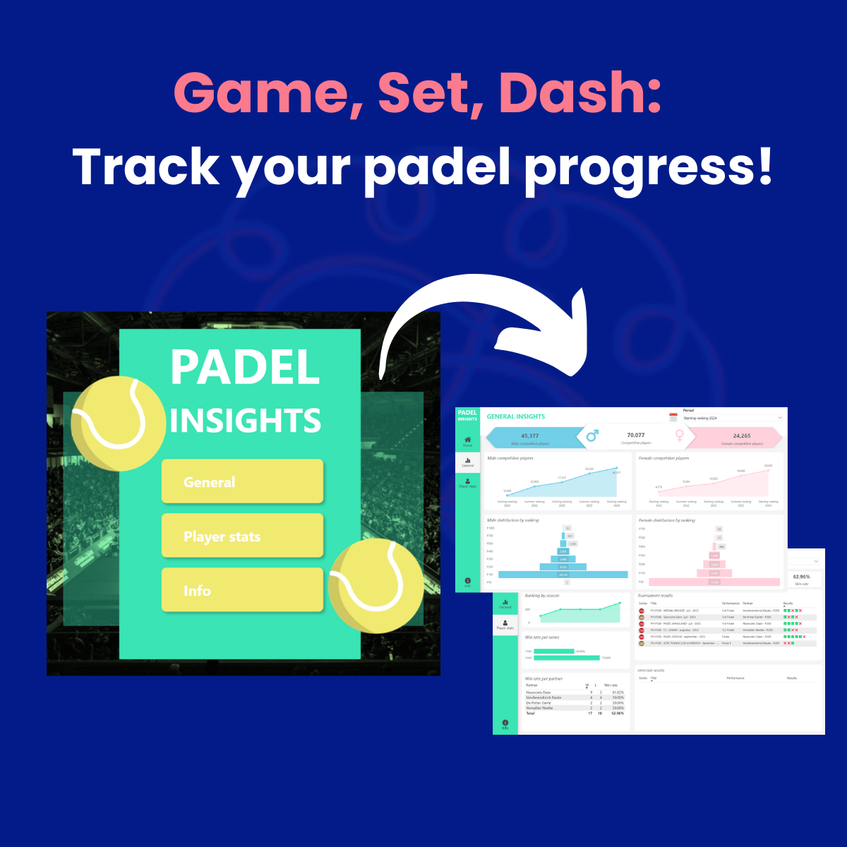 The prevalence of padel is evident not only in the sheer number of competitive matches played throughout the year but also in the motivation to climb the rankings. It’s no surprise that players proactively gain insight in their opponents’ data, to assess their own chances of winning.