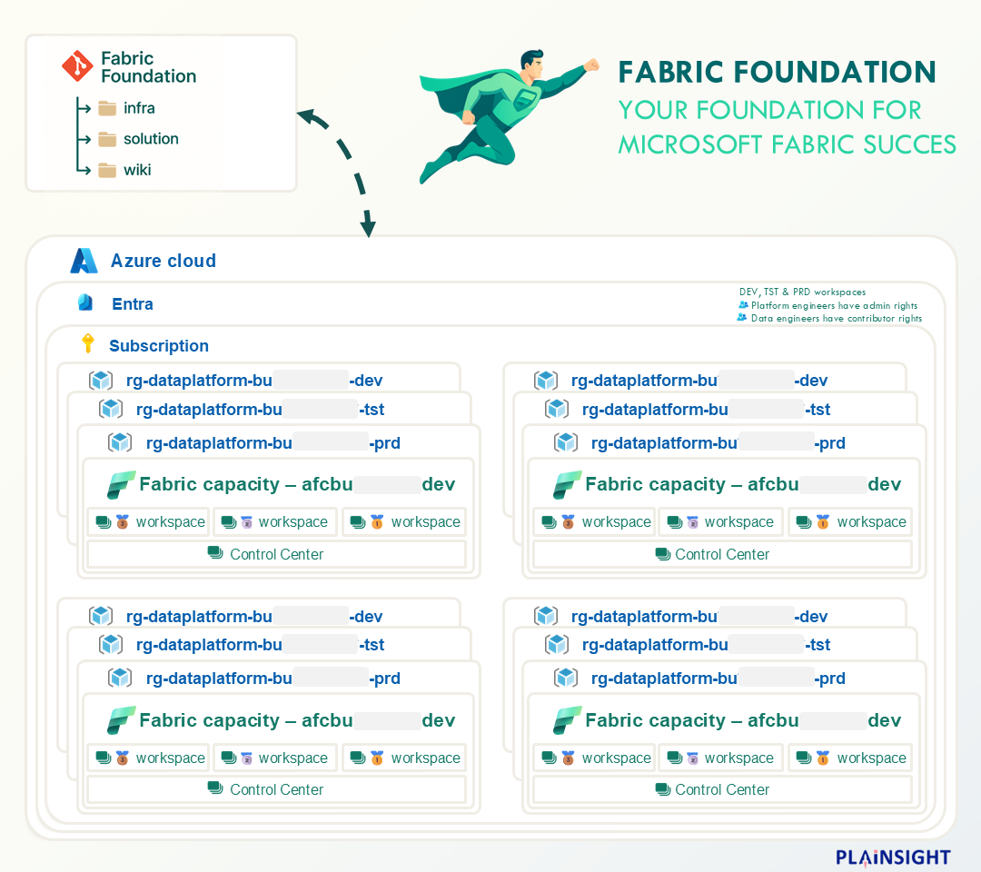Instead of manually provisioning everything, we turned to Fabric Foundation an accelerator developed by Plainsight.