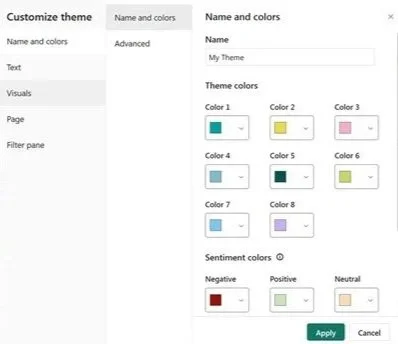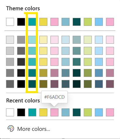 In the final step, the script will generate dark and light variations for the theme colors. If we look at our Power BI interface again, you can see that each theme color also has some variations available: