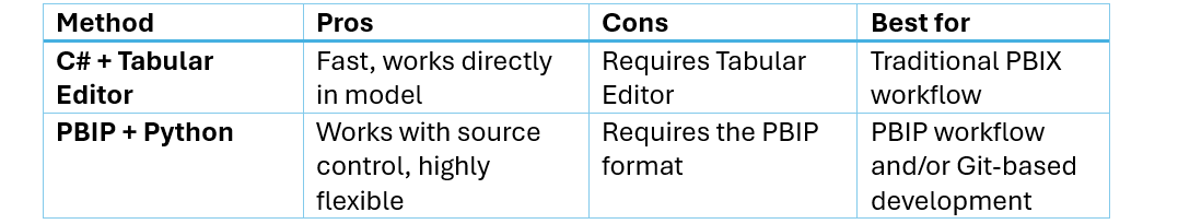 Option 1: C# Script (Tabular Editor)