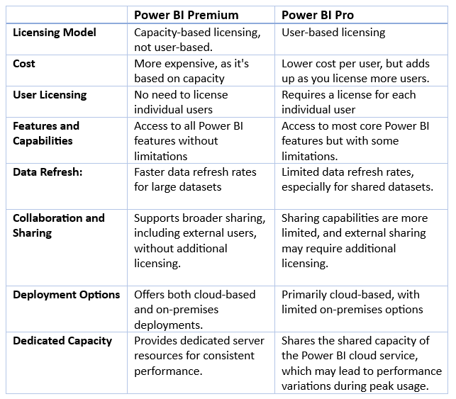 Understanding the differences between Power BI Premium and Power BI Pro licensing options, is necessary to choose the right approach for your organization's needs.